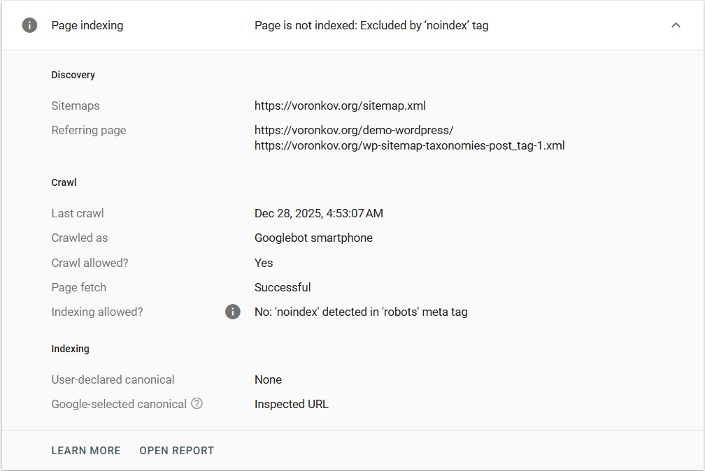 This page is not indexed. Pages that aren't indexed can't be served on Google. See the details below to learn why it wasn't indexed. Learn more